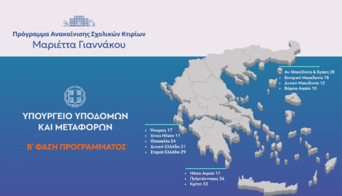 Ο αριθμός των σχολείων που ανακαινίστηκαν ανά Περιφέρεια έχει ως εξής: