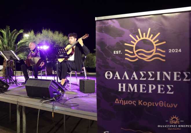 Ο διεθνούς φήμης Ιταλός μπαντονεονίστας Mario Stefano Pietrodarchi και ο διακεκριμένος Κορίνθιος κιθαρίστας Δημήτρης Σουκαράς μας χάρισαν μια εκπληκτική μουσική εμπειρία με θέματα από τον κινηματογράφο, προκαλώντας ρίγη συγκίνησης και θαυμασμού.